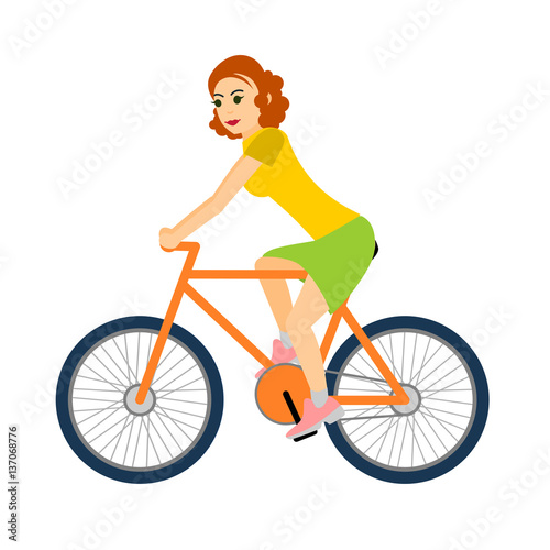 Obraz premium Woman cyclist rides a bicycle. Vector illustration isolated on white background