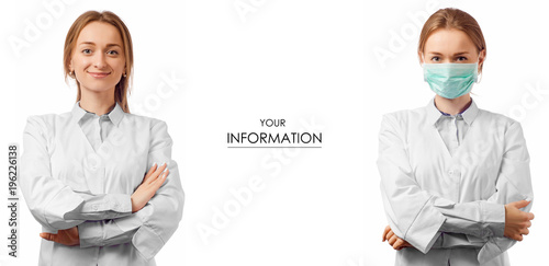 © Kabardins photo, Fototapeta premium Woman doctor in medical gown and masked health medicine set pattern