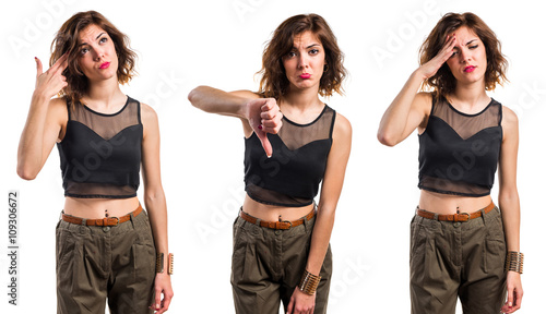 © luismolinero, Fototapeta premium Woman doing bad signal