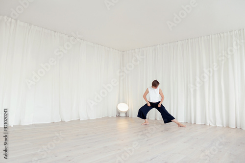 Fototapeta premium Woman doing exercises in a white room