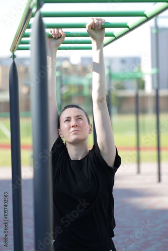 Fototapeta premium Woman doing workout exercises outside