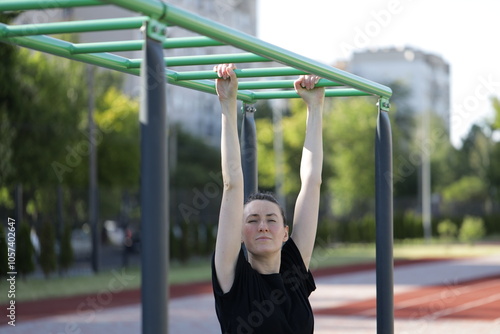 © 4Max, Fototapeta premium Woman doing workout exercises outside