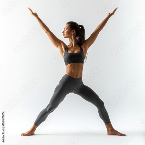 Obraz premium Woman doing yoga dancer pose exercise wellness fitness.
