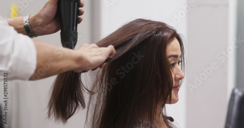 © leungchopan, Fototapeta premium Woman drying hair in the salon