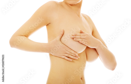 Fototapeta premium Woman examing her breast - breast cancer concept