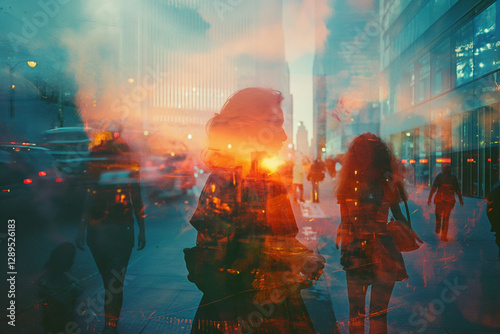 Obraz premium woman exposure and reflection in street Portrait