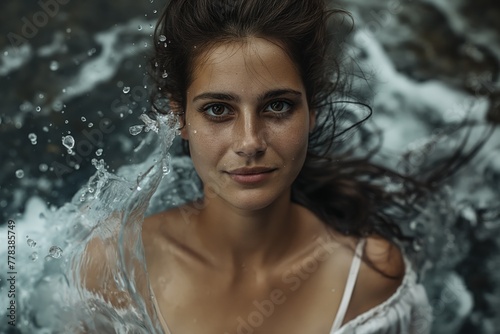 Obraz premium Woman Floating in Ocean Depths