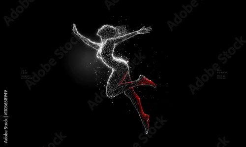 Fototapeta premium Woman floating low poly technology background with futuristic polygonal art