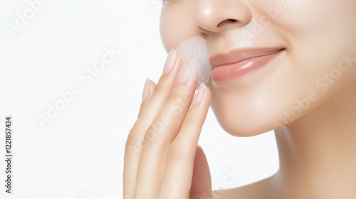 © Danudet.C, Fototapeta premium Woman Gently Cleansing Face with Soft Foam in Beauty Routine