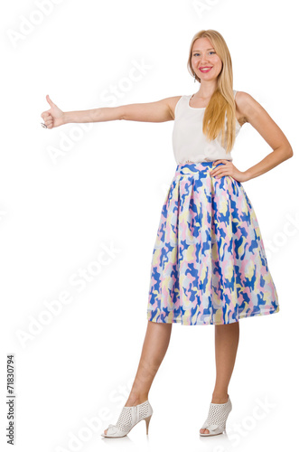 Fototapeta premium Woman giving thumbs up isolated on white