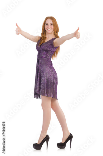 Fototapeta premium Woman giving thumbs up isolated on white