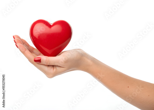 Obraz premium Woman Hand holding red heart, on isolated white