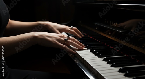 © mh, Fototapeta premium Woman Hands Playing Piano