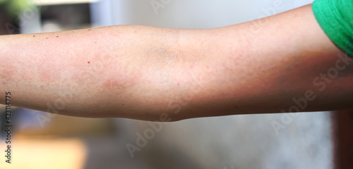 © Amphawan, Obraz premium Woman has red rash on her right arm
