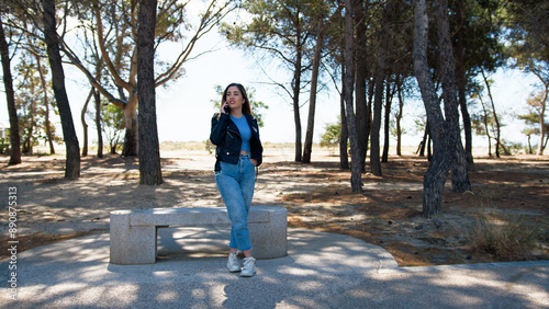 © francescosgura, Fototapeta premium Woman Having A Call In The Park