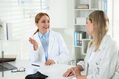 Obraz premium Woman having appointment with smiling cardiologist at table in clinic