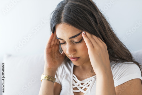 © Dragana Gordic, Fototapeta premium Woman having headache or dizziness problem. Health care and treatment concept.