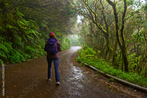 © Xalanx, Fototapeta premium Woman hiking in Anaga forest trail