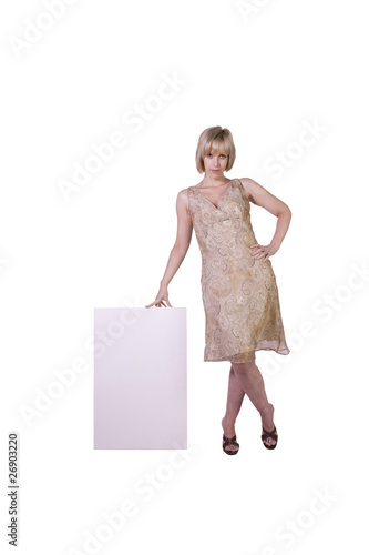 © Mehmet Dilsiz, Naklejka premium Woman Holding a Blank Sign