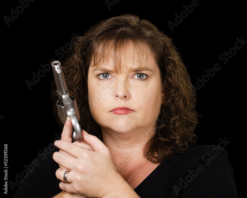 © Robert Hainer, Obraz premium Woman holding loaded gun