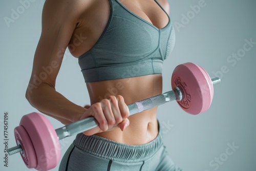 © hakule, Obraz premium Woman Holding Pink Dumbbell