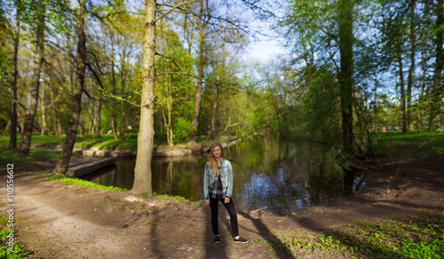 © Michael Kachalov, Obraz premium Woman in a park near water