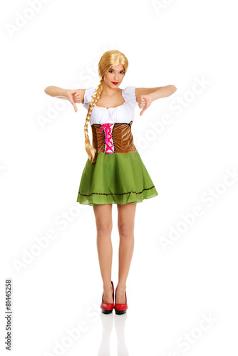 Fototapeta premium Woman in Bavarian dress with thumbs down.