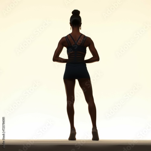 © Amir, Fototapeta premium Woman in Black Top and Shorts Against White Background