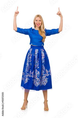 © Elnur, Fototapeta premium Woman in blue dress with flower prints isolated on white