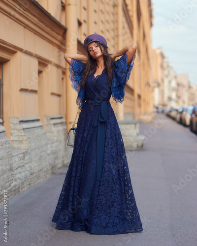© Dmitry Tsvetkov, Fototapeta premium Woman in blue evening dress
