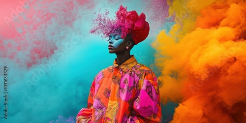 © Ali, Fototapeta premium Woman in colorful clothing, surrounded by smoke.