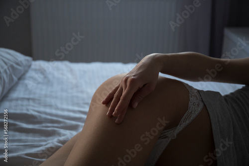 © Erika, Obraz premium woman in lingerie sitting on bed