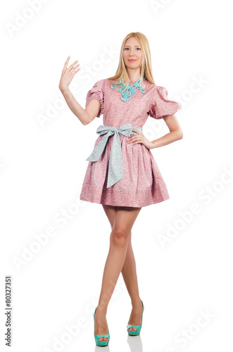 Naklejka premium Woman in pink doll dress isolated on white
