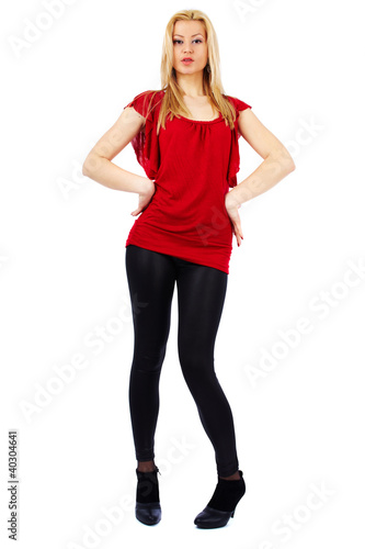 © Xalanx, Fototapeta premium Woman in red and black on white