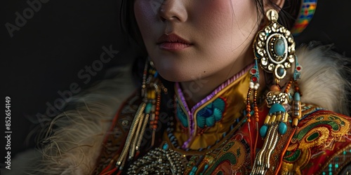 Fototapeta premium Woman in Rich Mongolian Clothing