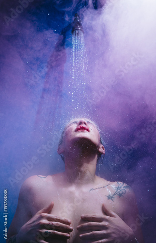 Obraz premium woman in shower with colorful steam