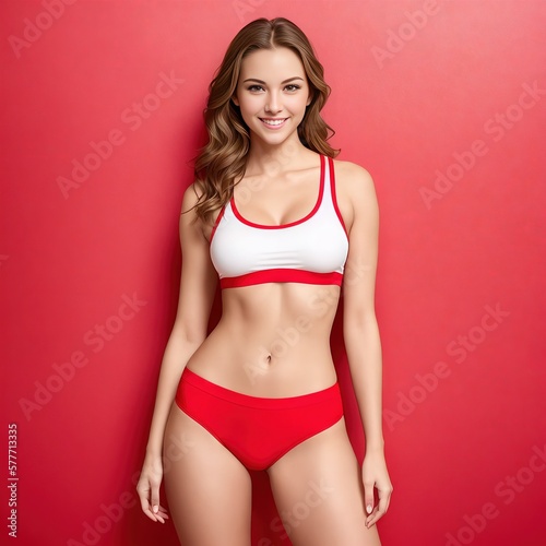 © Bualong, Naklejka premium woman in swimsuit red background made with Generative AI