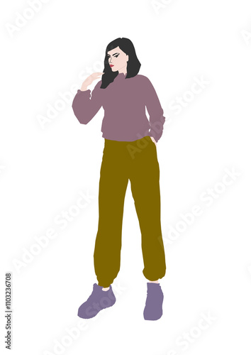 © SAZHIDA, Obraz premium Woman in tracksuit and sneakers on white background