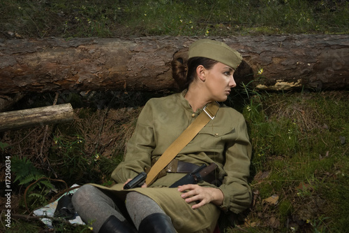 © Demian, Fototapeta premium Woman in uniform of the Red Army of the Second World War.