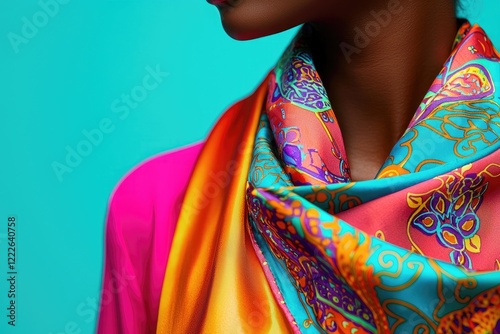 © Lyashko-Ai, Obraz premium Woman in Vibrant Silk Scarf