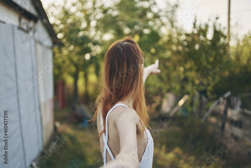 Naklejka premium woman in white dress summer countryside Sun freedom