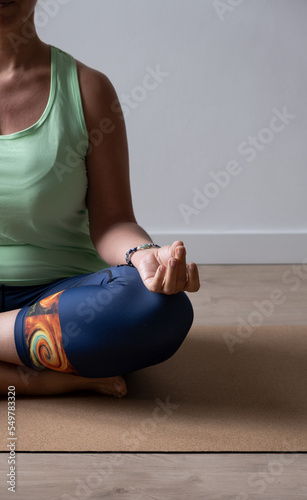 Naklejka premium woman in yoga pose, person performing exercise on mat