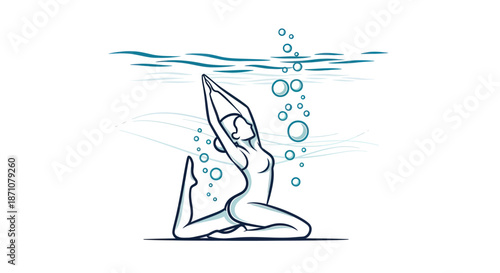 © Berkah, Fototapeta premium Woman in Yoga Pose Underwater with Bubbles.
