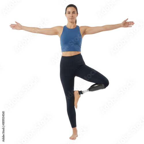 Fototapeta premium Woman in Yoga Pose with Prosthetic Leg: Strength & Balance