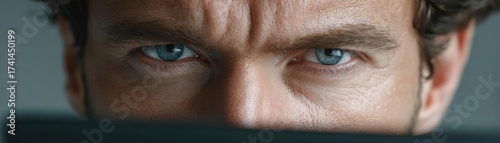 © Muhawaii, Obraz premium Woman intensely focused on screen.