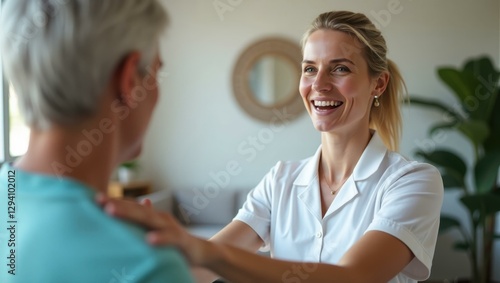 © TopImage, Fototapeta premium Woman is smiling while she is getting her hair done