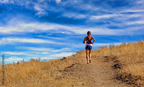 Naklejka premium Woman jogging on a Colorado hiking/biking trail
