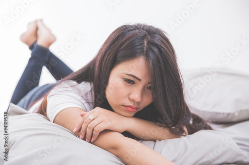 © Odua Images, Fototapeta premium Woman laying on the bed