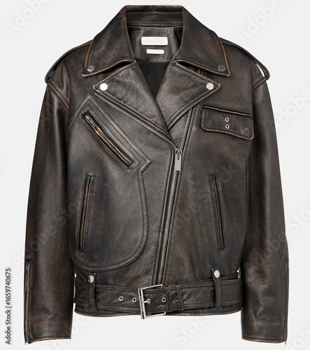© CREATIVE KNIT DESIGN, Naklejka premium Woman leather jacket design front view isolated on white background