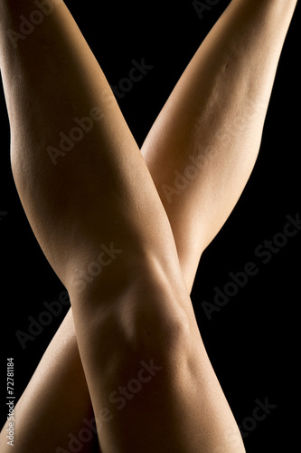 © Poulsons Photography, Fototapeta premium woman legs on black knees crossed back lit